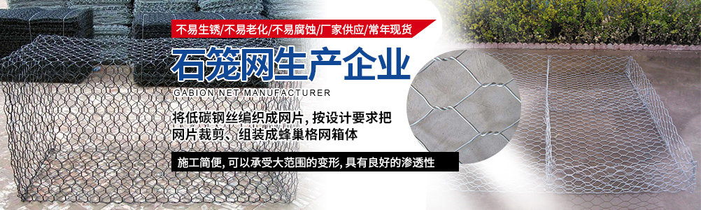 本公司主要生產:石籠網格賓網、重型六角網、鍍高爾凡格賓擋墻、雷諾護墊綠濱墊固濱籠、耐特籠、鉛絲石籠格賓石籠、電焊石籠網、鍍鋅石籠網、河道石籠網、包塑石籠網、勾花網、高爾凡石籠網、三擰石籠網、五擰石籠網等,可用于保護和支持河道、海堤、山坡、路橋、水庫及其他土木工程, 是防洪固堤工程的上好材料。以可靠的質量,滿意的售后服務深受新老客戶的好評。